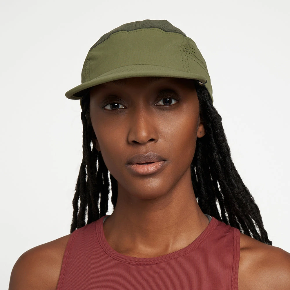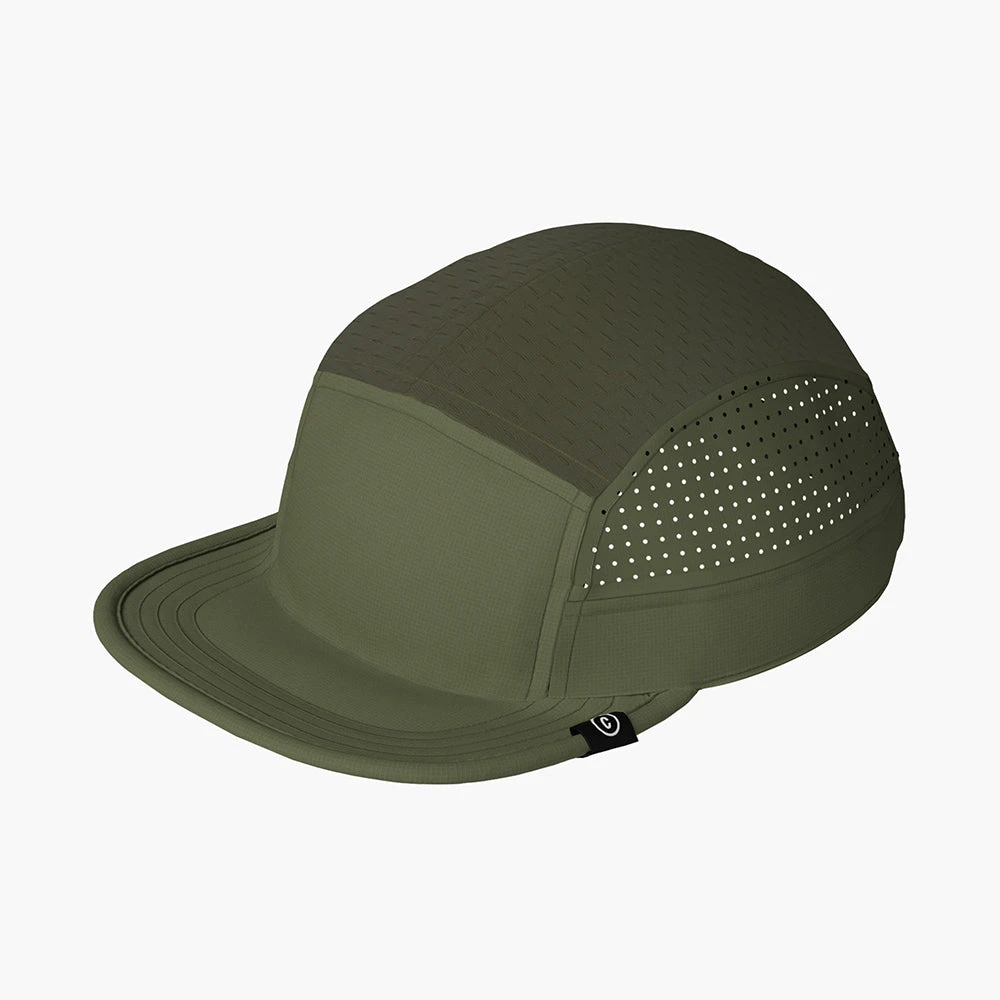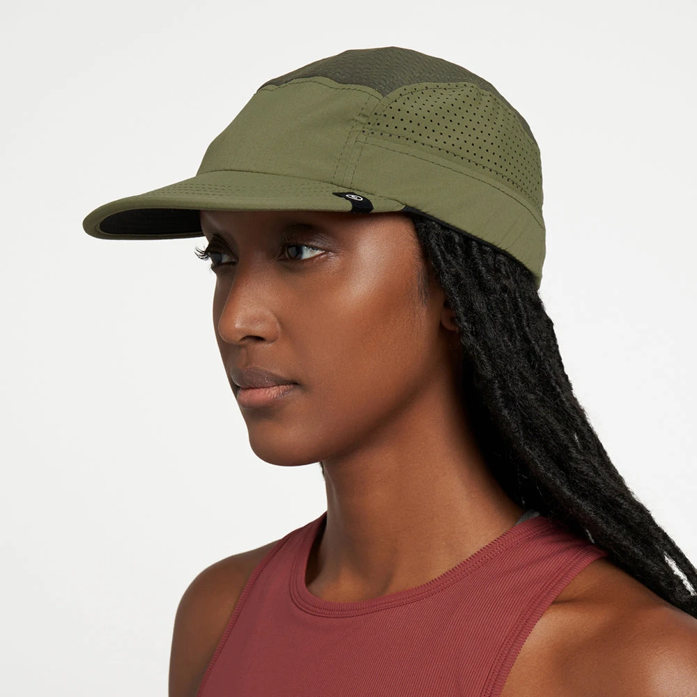 the original, the archetype, run ready and very much every day GOCap EVD. A PFC-free DWR treated, fully recycled nylon rip stop fabric on front panel and brim, laser etched on the side panels for breathability. Japanese recycled knit fabric top panels, coupled with COOLmatic | PLUS™ sweatband for run ready breathability, cooling and anti odour. our industry leading SOFTflat brim elevates long wearing comfort.