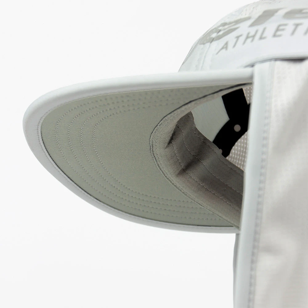 the removable neck protection, and its snap in, snap out convenience, makes the PYN the most versatile of caps for summer’s intense conditions. night runs inevitably happen and our logo is reflective, just in case.