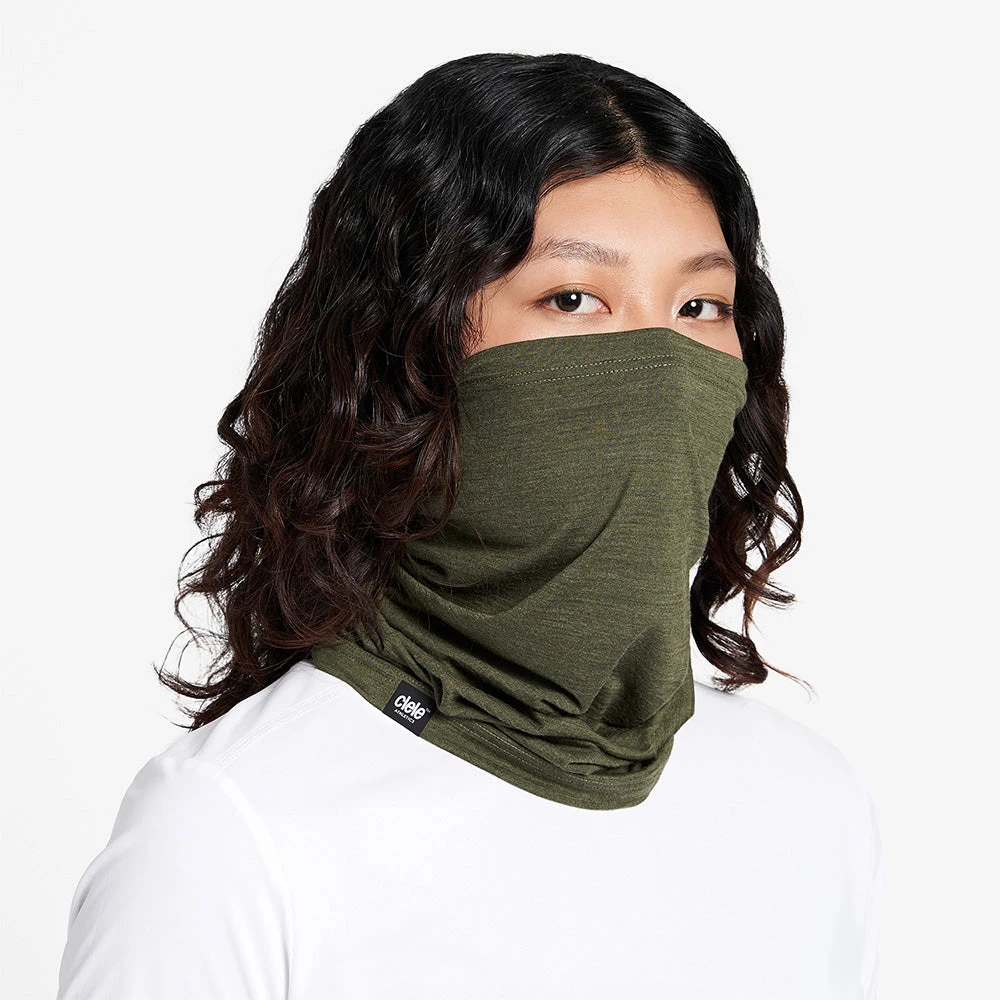 cold weather ready neck and face protection in the softest ciele athletics Sorino | WS fabric. merino wool combined with the comfort of silk make this next to skin layer feel just right under winter headwear and winter clothing.