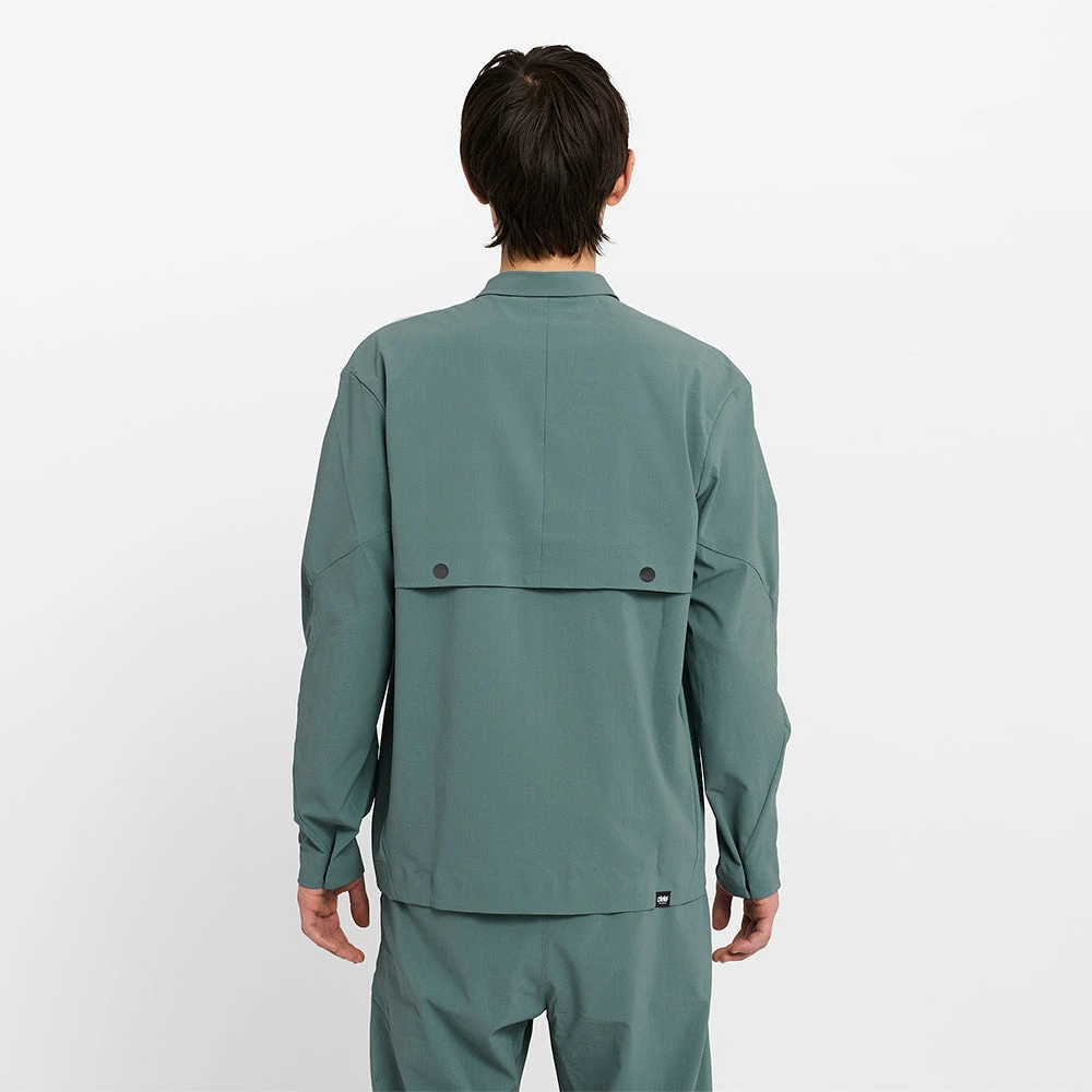 we started there for inspiration and upgraded it with our stretch Milkensuga stretch fabric, a C0 durable water repellent, and a huge back vent to keep things airy. this piece will land in your jacket rotation because it works on a run, but the fit and finish won’t hold you back from wearing it everyday pre and post workout.