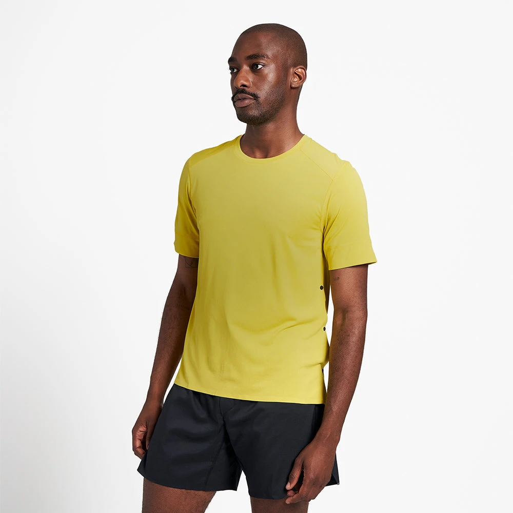 engineered, always on side vents, keep things breezy. flatlock stitching and critical welding alleviate much maligned chafing and elevate this essential run T to premium status.