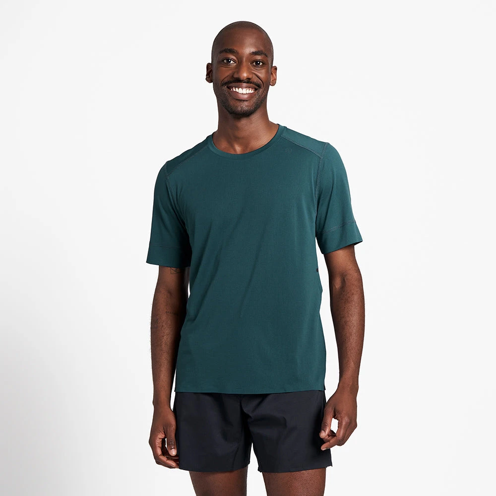 engineered, always on side vents, keep things breezy. flatlock stitching and critical welding alleviate much maligned chafing and elevate this essential run T to premium status.