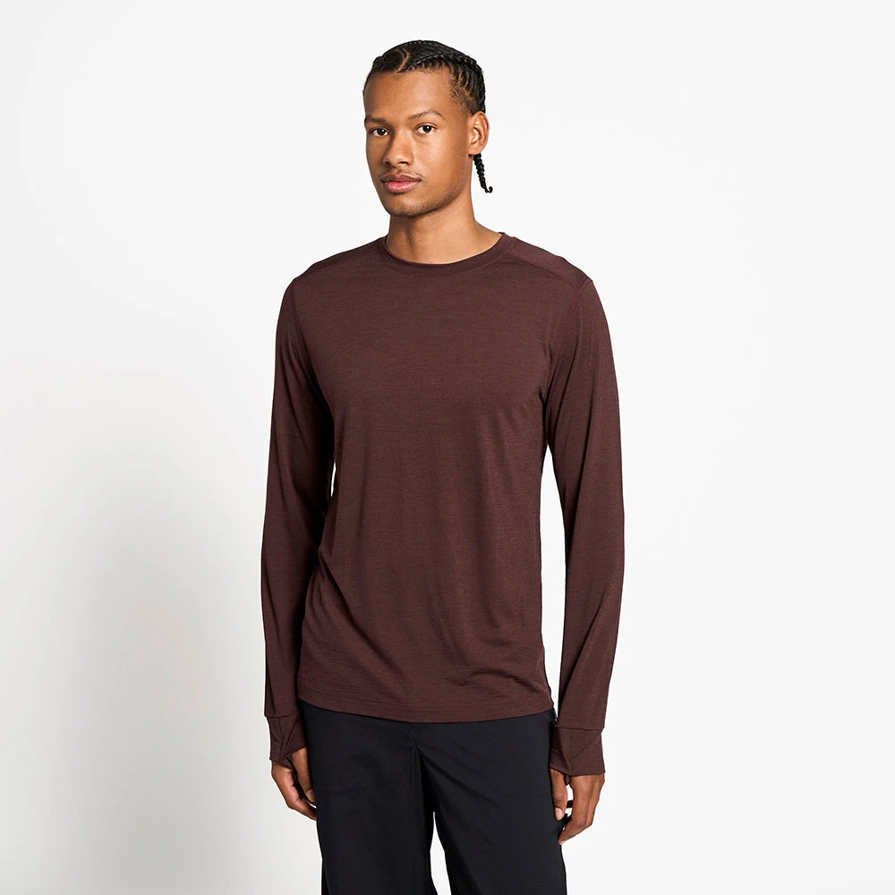long sleeve base layer using ciele athletics Sorino | WS fabric. cut close for a layerable fit with integrated thumb holes to keep sleeves in place as you layer up.