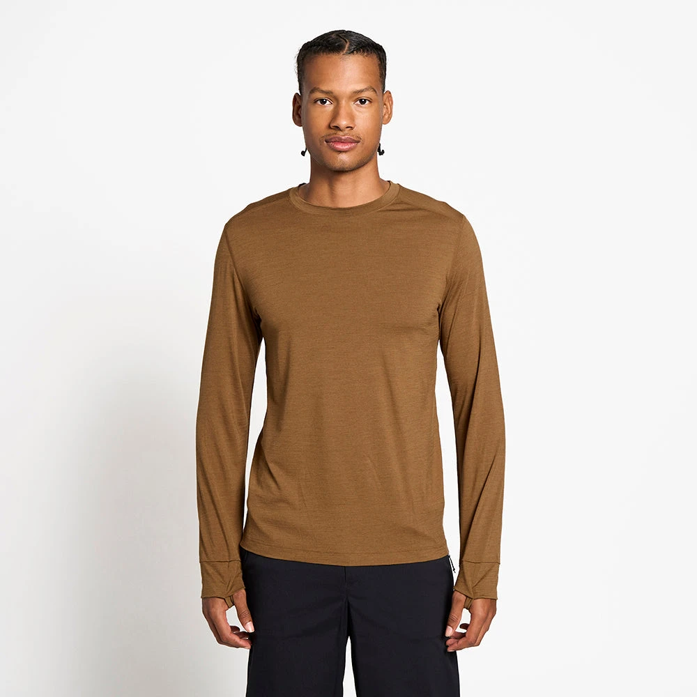 long sleeve base layer using ciele athletics Sorino | WS fabric. cut close for a layerable fit with integrated thumb holes to keep sleeves in place as you layer up.