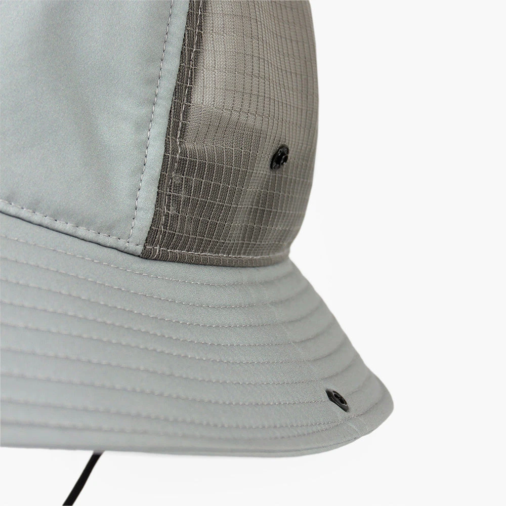 if we designed the new TRLCap to be the ultimate trail cap (we did) then this is clearly designed to be the ultimate trail bucket. the TRL crown, found on the bucket as well as the cap, was designed with intent. higher than usual, it encourages air circulation, leading to faster cooling. an extra wide 360º brim throws shade while our fit focused recycled FLEXweave woven fabric brings UPF protection and a clean, modern look. we’ve engineered a new liner with an integrated headband for reduced fabric consumption, this in a lightweight COOLmatic | PLUS PROPHORmesh™ fabric for structure, ventilation, and anti odour. our ZIPmesh is found on the back panels, breathable but structured and tear resistant. an adjustable chin strap keeps this hat on when the big winds come. the One Hundred logo is found, small, but front and centre in a reflective print.