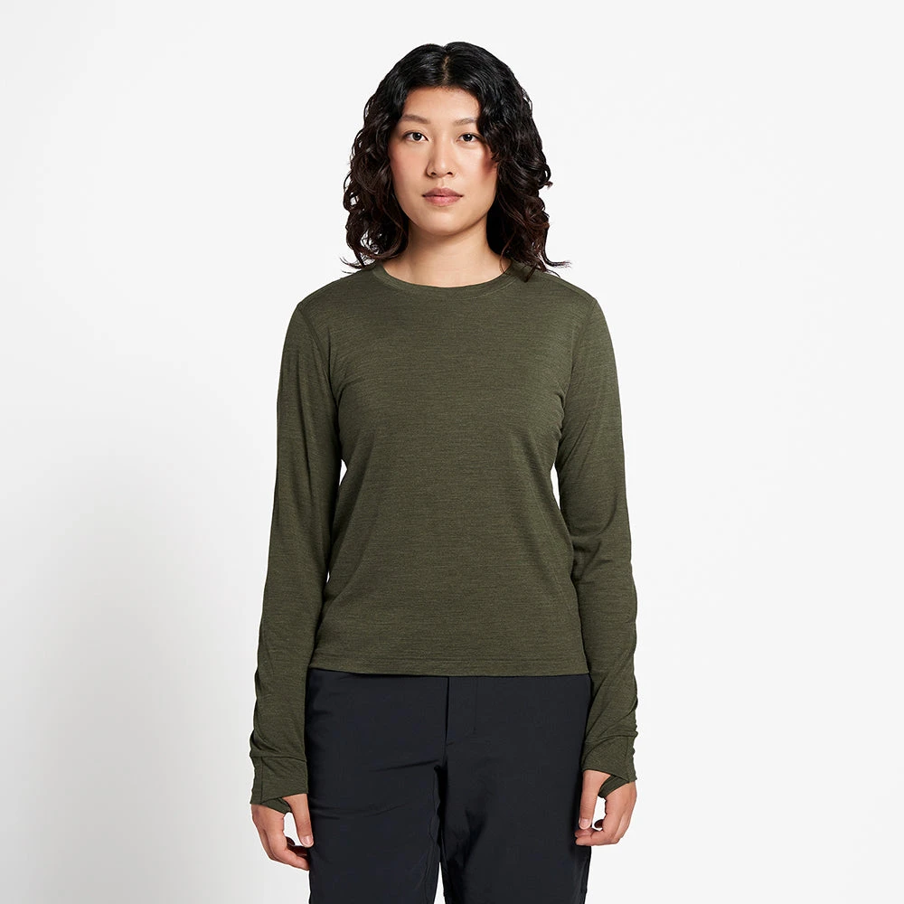 long sleeve base layer using ciele athletics Sorino | WS fabric. cut close for a layerable fit with integrated thumb holes to keep sleeves in place as you layer up.
