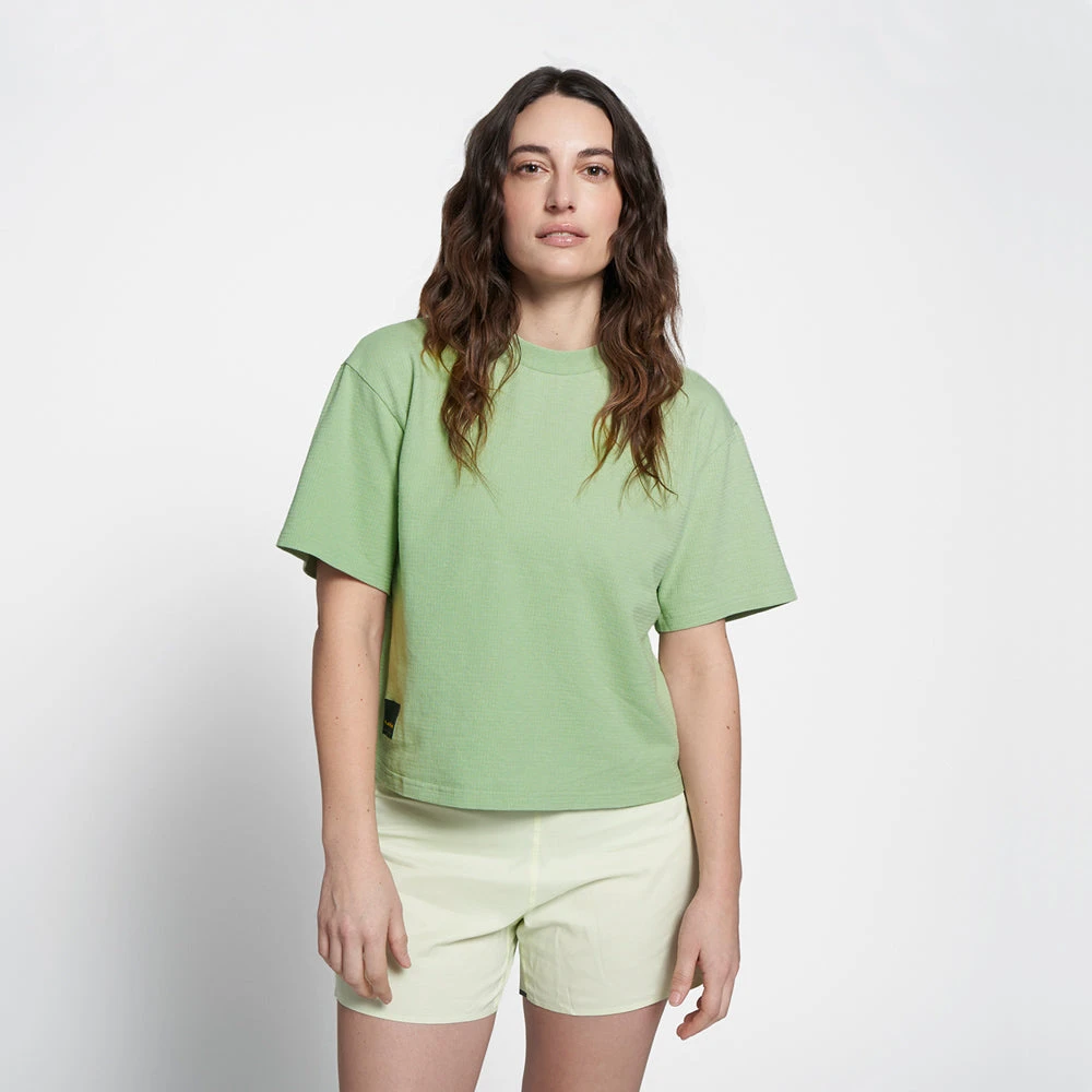 we mixed naturally hydrophobic wicking hemp fibres with an organic cotton to create this engineered Sorino material. a structured fabric with a soft hand-feel that is cool to the touch and delivers surprising performance to our NTRTshirt. the ample fit is airy while the loose cut allows for freedom of movement off road runs far from home. our first natural fibre performance T.