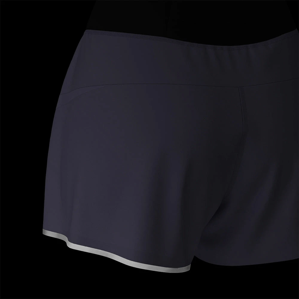 this high rise 4 inch run short uses a recycled polyester with a touch of elastane for stretch.