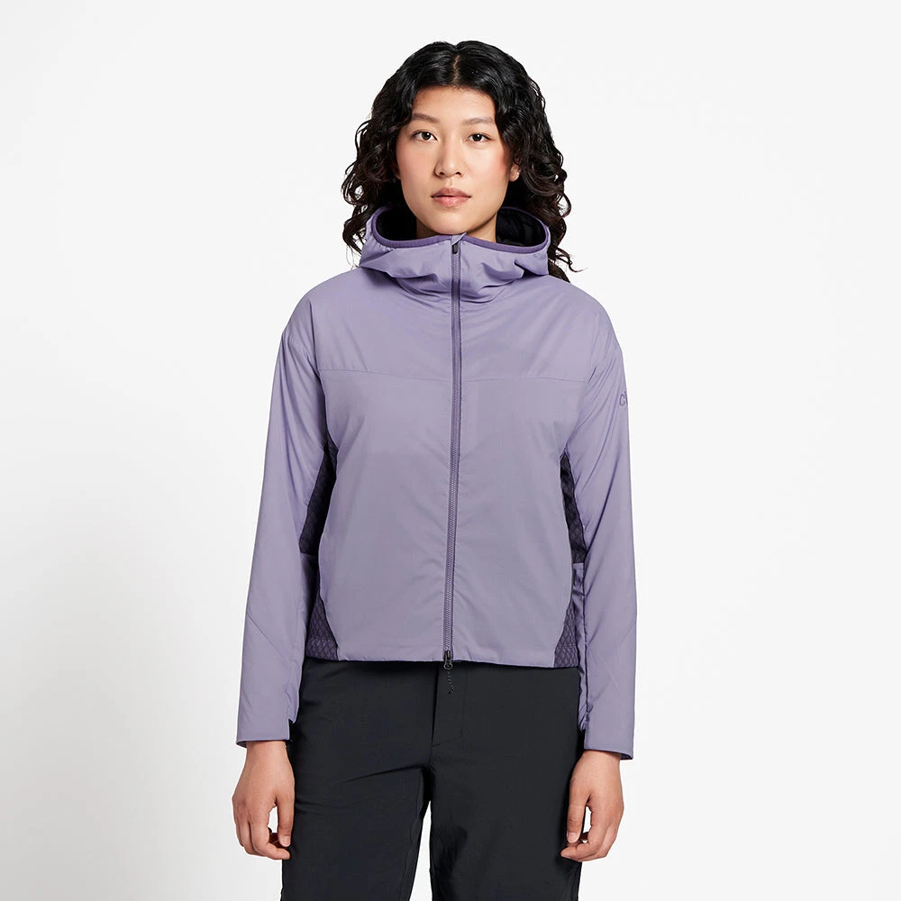 designed for running but built to perform throughout mixed conditions and the variety of cold weather cardio driven sports we play at. a breathable recycled outer shell and C0 DWR for performance and protection. our insulated©_-fit hood for the coldest of days. a two way front zip opens up for extra venting when needed. reflective details. integrated AIRBeam™ venting and strategic panels of COOLmatic | EXP™ DIAMAfleece with carbon elevate this garment’s ability to regulate temperature from start to finish and we’ve harnessed the natural power of Sorino | WS light loft insulation, using wool and silk for exceptional warmth and thermo regulation with less bulk.