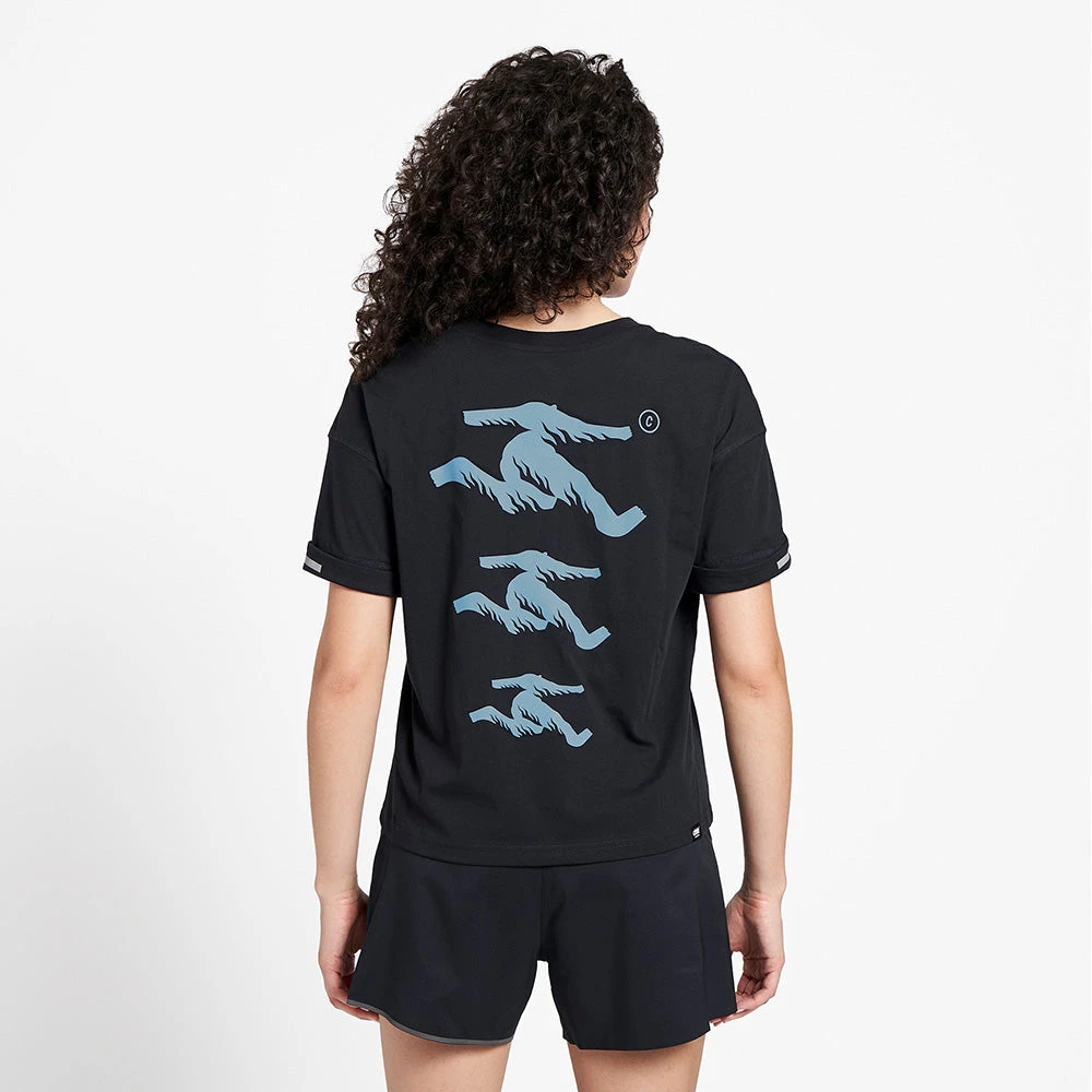 a women’s specific boxy fit for flow on every run. the comfort and cooling effect of GRS recycled cotton, in combination with GRS recycled polyester to bring you a moisture wicking, quick drying run ready t-shirt.